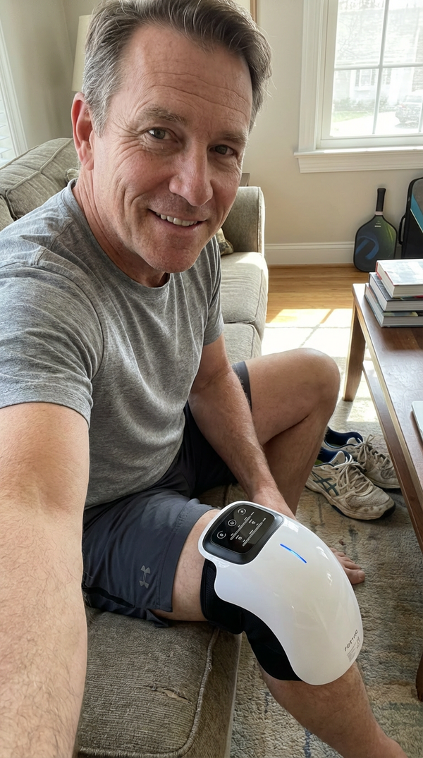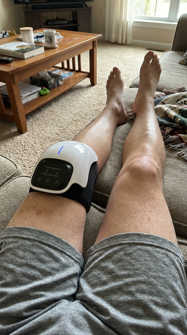KneeFlex Pro is designed to provide gentle heat, light therapy, and comfortable compression. Many customers use it during at-home recovery, but you should always follow your healthcare provider’s guidance regarding timing and use after surgery.